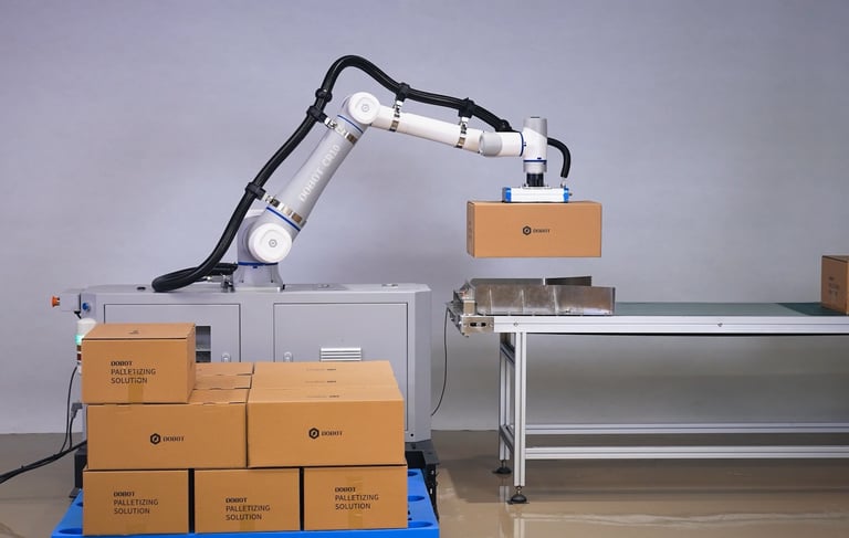 Equipada con los robots colaborativos CR10A/20A de nueva generación, la cadencia de paletizado puede alcanzar 7-9 cajas/minuto.