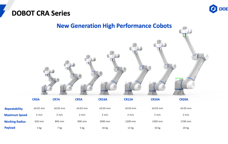 Dobot presenta en Automate los nuevos robots colaborativos serie CRA