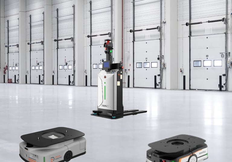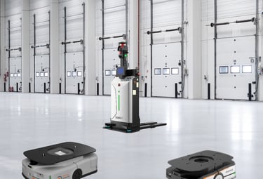 Robots móviles autónomos para transporte inteligente y optimización de almacenes.
