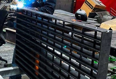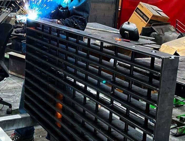 Estructuras metálicas robustas, bases especializadas para celdas y ductos industriales.