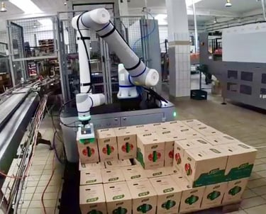 Implementación exitosa de celdas robóticas colaborativas para paletizado automático, resultando en un incremento del 85% en eficiencia operativa y reducción del 60% en tiempos de ciclo para nuestro cliente del sector automotriz.