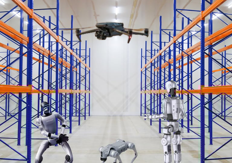 Robots de servicio, drones industriales y tecnología humanoide para el futuro.